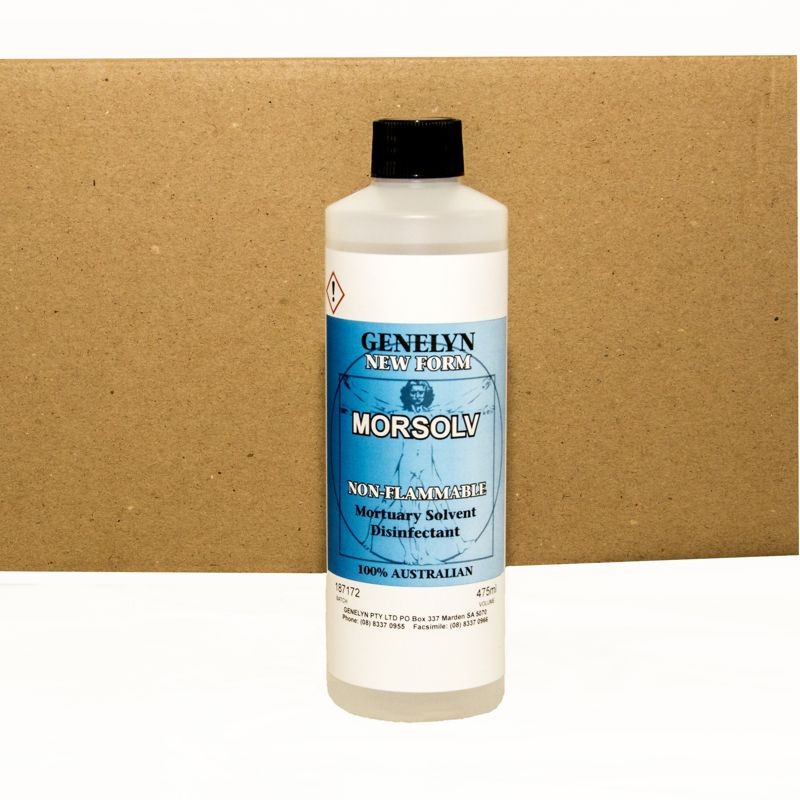 Morsolv is a powerful formulation designed for use in mortuaries. It is non-toxic and non-flammable. Morsolv effectively removes forensic ink, blood, grass stains, oil and foreign matter from skin, face and hair.
